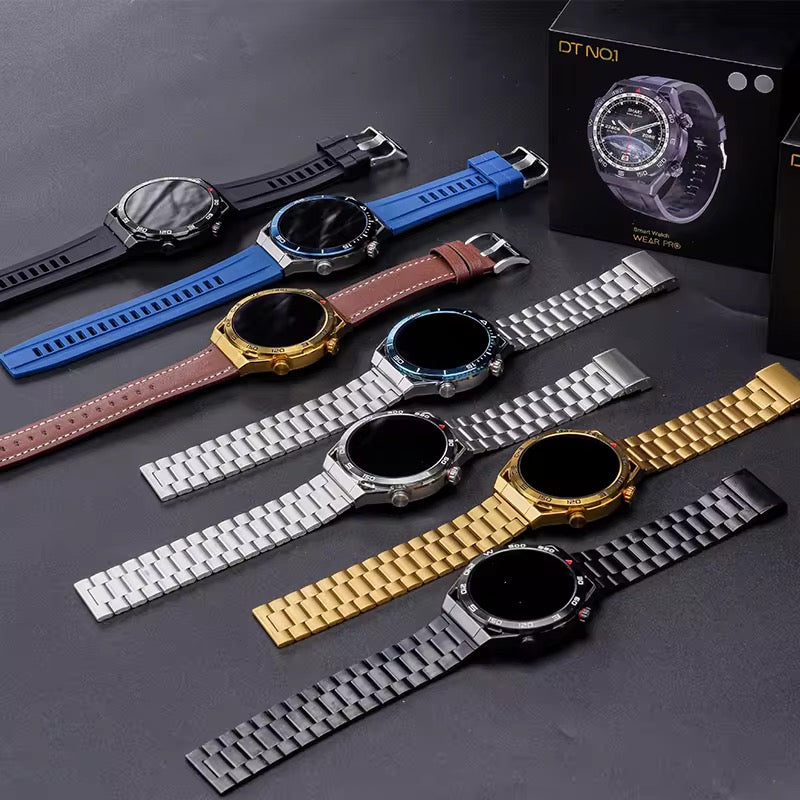 GT4 Pro – Montre connectée haut de gamme avec NFC et 2 bracelets (Silicone & Acier)